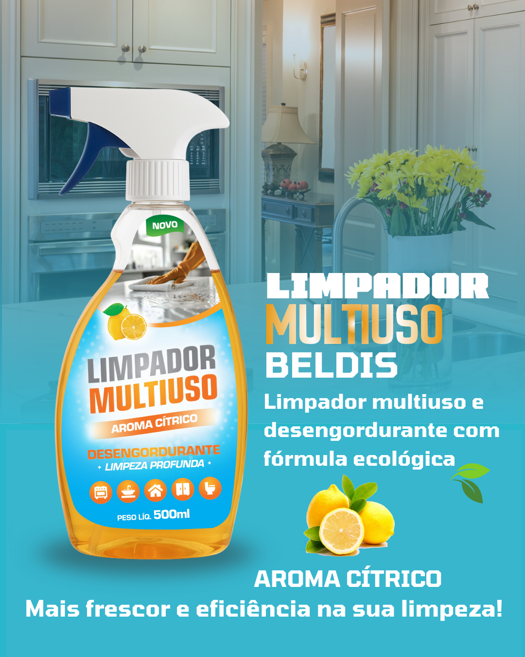 Formulado com D’Limoneno, um agente natural extraído da casca da laranja, o Limpador Multiuso Beldis é ideal para limpezas profundas e eficazes em diversos tipos de superfícies. Sua composição biodegradável garante eficiência sem comprometer a segurança.